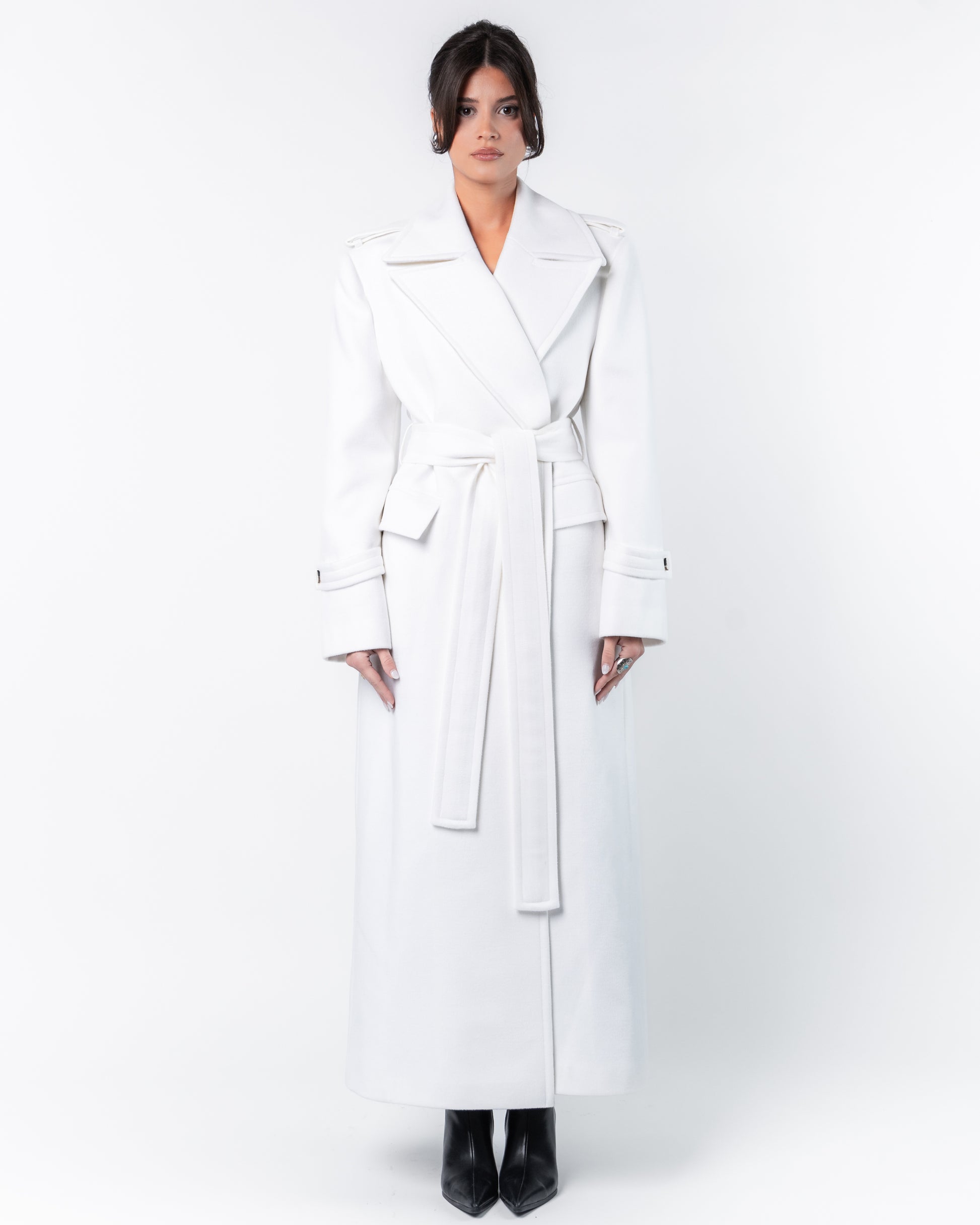 Adeline Coat with maxi length. Wrap yourself in timeless elegance with our Adeline Coat from wool and polyester , designed for both warmth and sophistication.