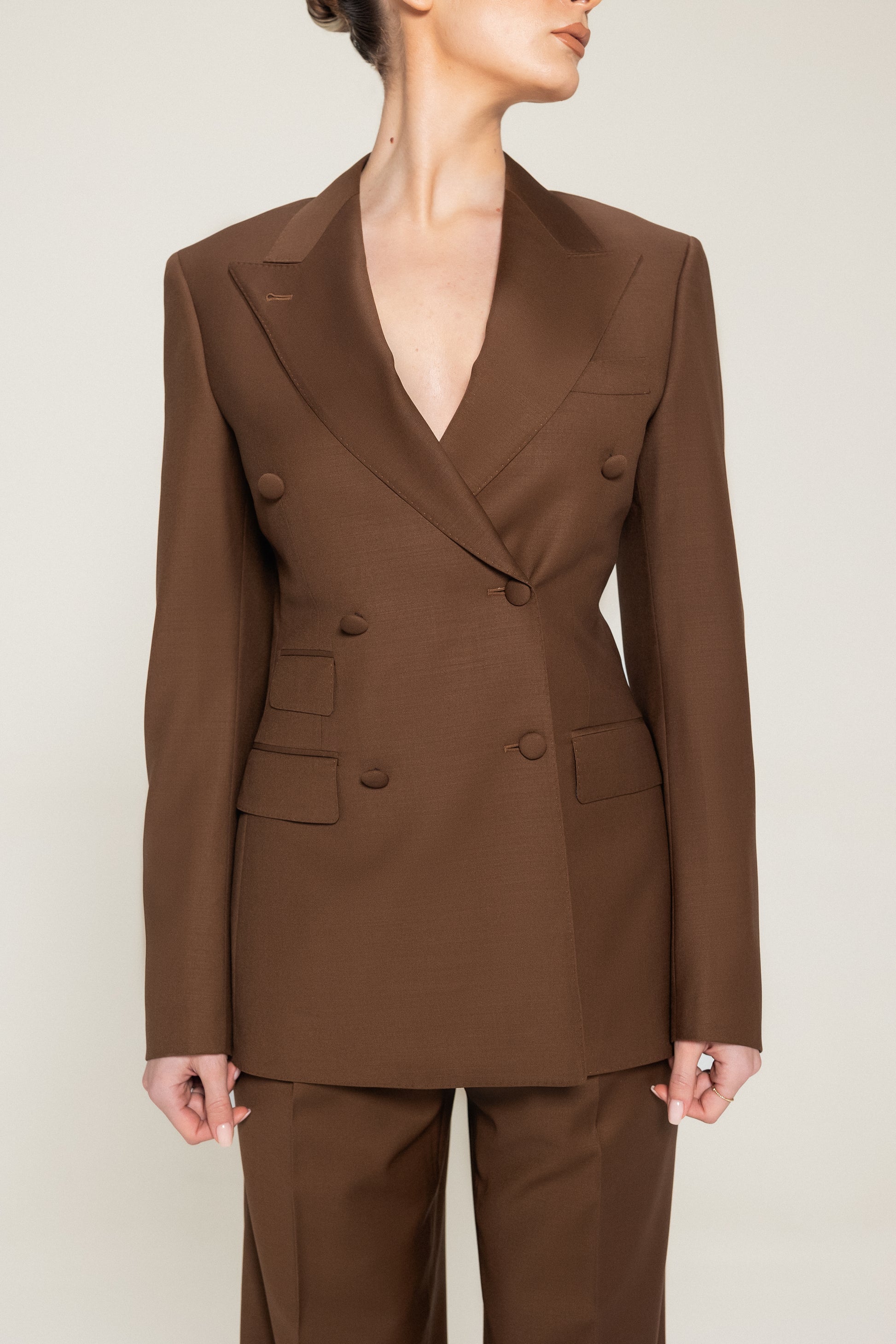 Brown Double Breasted Half Canvas Suit